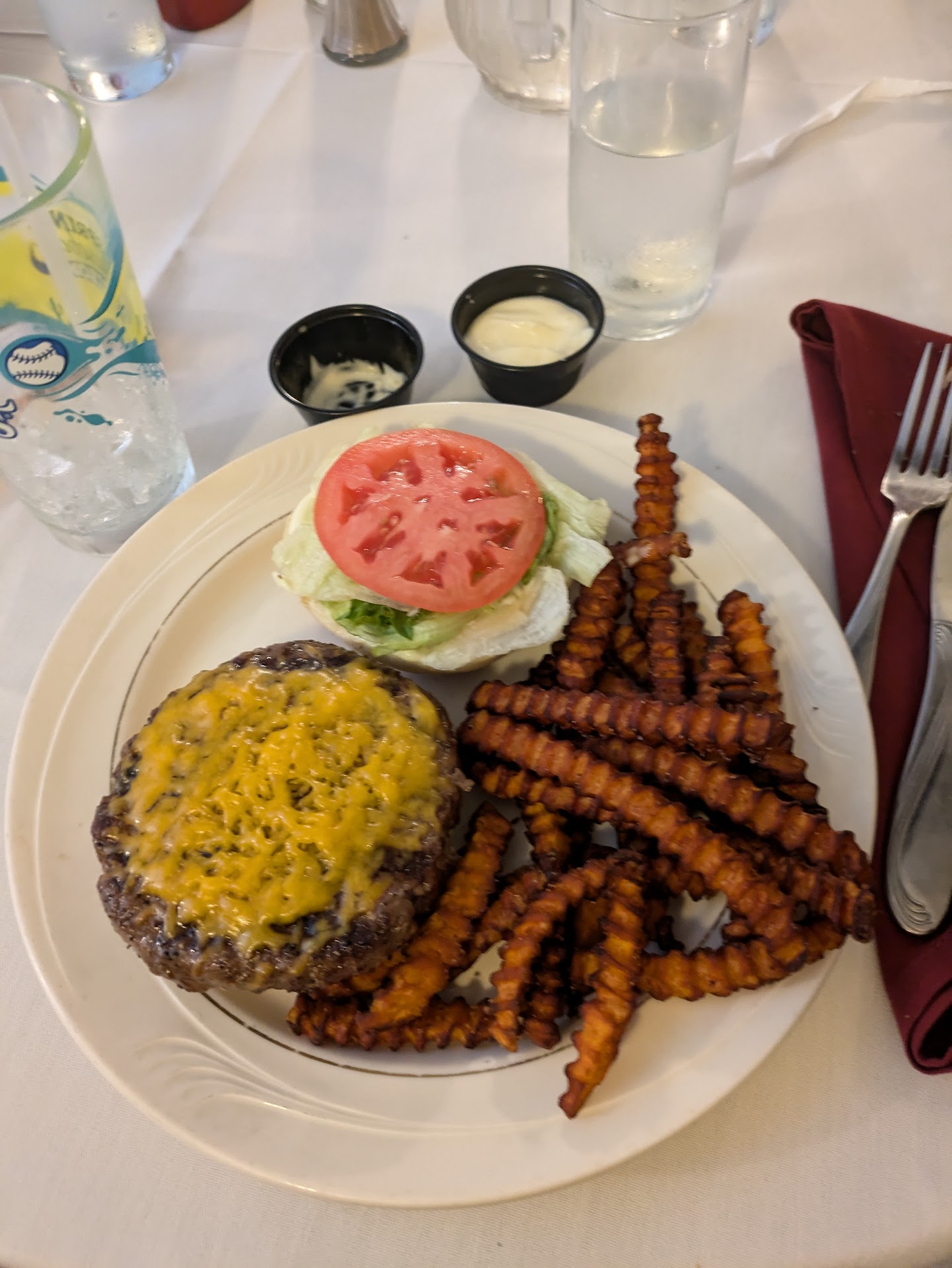 We were staying at the Country Inn next door and we were looking for a nice place to eat dinner outside. This was it. They setup the outdoor space so that social distancing could be done and it was very comfortable. Our server Nicole was very friendly and gave us some great tips on visiting the area. The food was outstanding. We had the lemon pepper haddock. It was fresh, well cooked, and well seasoned. She asked if we wanted tarter sauce on the side, we both said yes thinking we may or may not use it. It was fantastic! I've never commented on a condiment before, but it turned out to be much more than just tarter sauce. It seemed to have dill and other fresh flavors in it. We asked about it since it was so unique and delicious. It turns out that it was home-made. I wound up using it on my baked potato too. The vegetables were home grown zucchini that were cooked perfectly and well seasoned. The potato had a sort of crispy skin and was excellent. We had asked for a vodka based drink and she made an excellent blueberry drink. The prices were really reasonable, the quality excellent and the service efficient and friendly. We'll be back on our next...