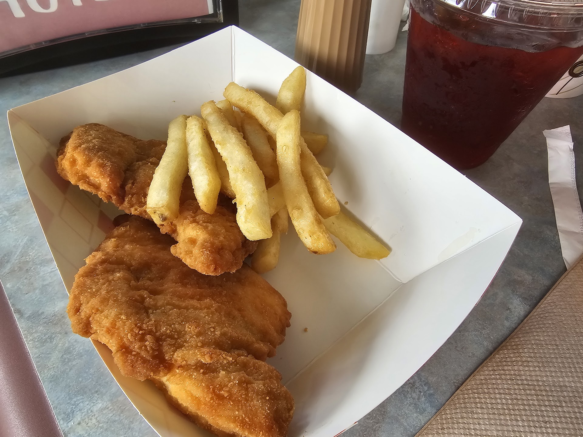 Read moreThey charge a fee for using credit cards. Bring cash to.save. I had a cheese burger and curly fries, large pop x2. My husband had chicken fingers and tater tots, large pop. First time being there. And they don't open till 4 pm also. The burger was $6 add a combo to that another $6. POP alone was $3.78 with tax 22oz. Service was slow! And opening so late you would think there would be more movement. They also serve ice cream and that took...
