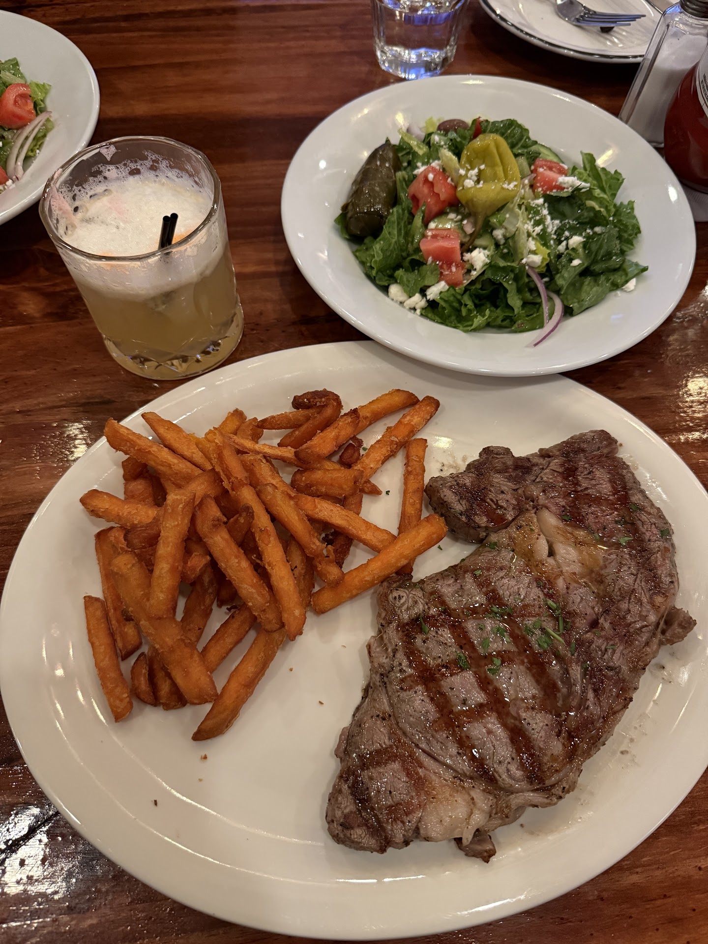 The place had a great sounding menu, so we tried it. We got a wine and beer then the zucchini app. App was good. Pita and oil with olives starter, like the old school bread and butter was nice before the app, was great. Place was dead but we like it quiet. Ordered the skirt steak over pasta and gyro sandwich. All was fine and tasted good. My issue was the menu had prices like the wine was $10 but the check said $10.40. Everything had a 4% increase on it. When I asked the server about the addition she said it was tax. When I asked about the sales tax on the bill that was also added to the 4%, she insisted it was a tax. We paid the full amount and went on our way. I know things are tough these days. My B-in Law has a restaurant in another town not near here, so I get it but to add 4% and not know why is a shame. I can only assume it was a Credit Card fee but saw nothing on the website, menu or check that stated that then the server not knowing either didn't help me...