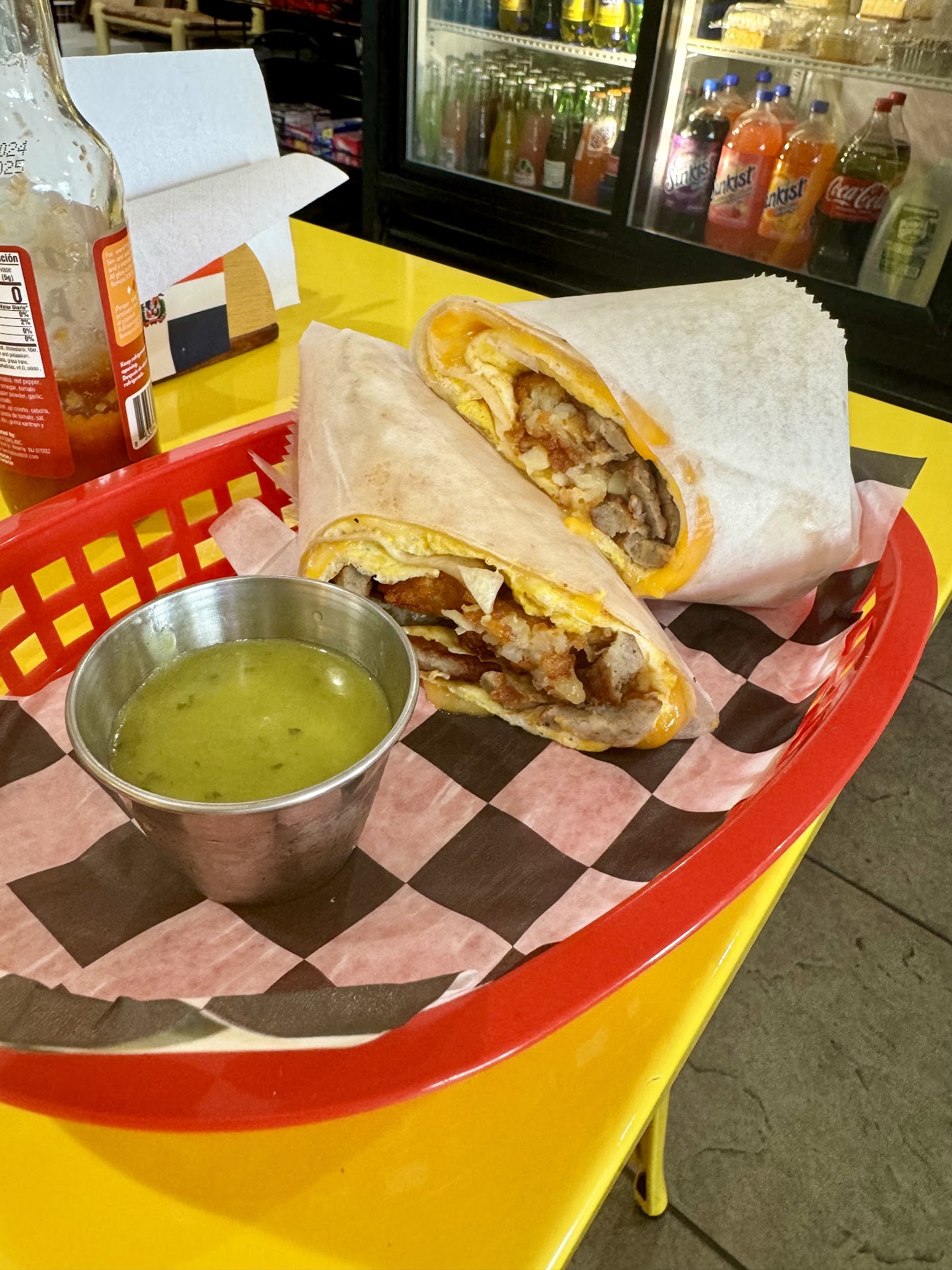 Ā Ā Ā Read moreStopped in here the other day for a breakfast burrito while I was working nearby and it was delicious. I did want to know the ingredients in the tortilla but they could not tell me. I do not like to eat anything made with "enriched" (IE sprayed with chemicals) or bleached flour. However it was delicious! The coffee was okay, could have been a little hotter. Service was great and he made it just the way I wanted. There is municipal parking right around the corner.25...