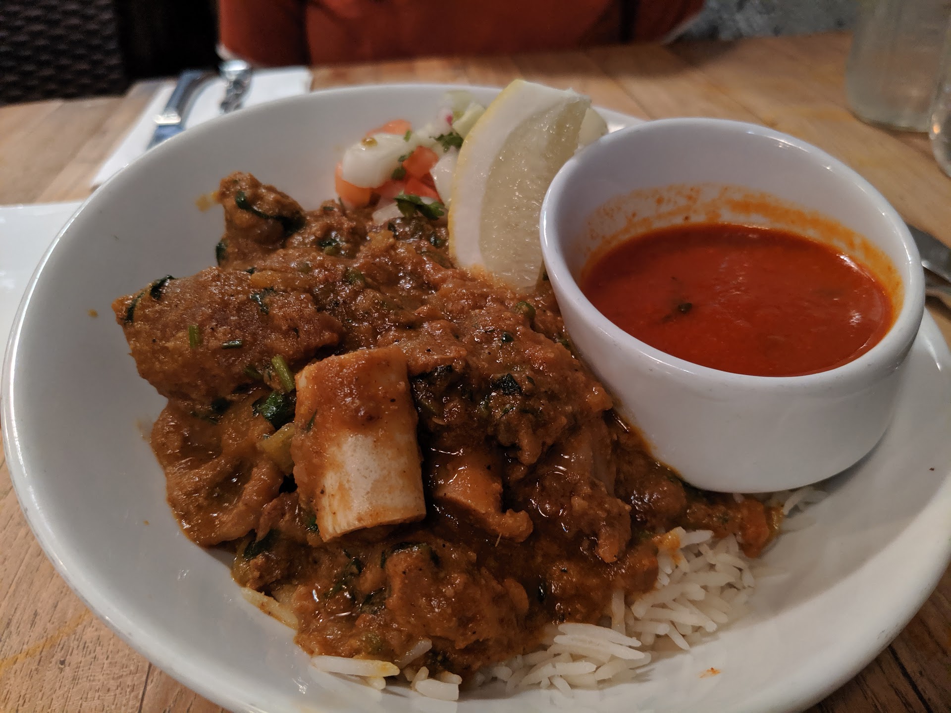 Read moreSmall and quaint location. The decor is awesome. I got the vada pav for appetizer and rice bowl with lamb curry with vindaloo sauce. The vada pav was on point. It's bite size so don't expect much besides a nice tickle to the taste buds. The lamb curry was excellent. It was slow cooked to perfection. Good amount of spice and not overpowering. The reason this place gets only 4 stars is because the vindaloo sauce that I got on the side was flat out bad. It tasted like spicy tomato arabiatta sauce. It was most definitely not what vindaloo sauce should taste like. The sauces offered needs more attention to make it more authentic. Looking forward to trying the French side of the...