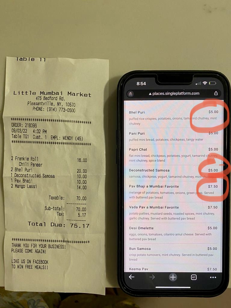 I have been going to little crepe street/ little Mumbai market for years now. Take out is absolutely the worst. I have had MULTIPLE bad experiences. From ingredients just left out of dishes, inconsistant dishes being not put in the take out bags but charged for, to the phone going to voicemail and when I get there it’s empty. Tonight’s issue really takes the cake for me. I was waiting for my dish to be finished and I had ordered crepe pasta. I watched the chef go to plate the crepe pasta and then leave about a quarter of the dish in the pan and pouring it on a plate for themself. I watched the chef grab a fork and walk to the back and start eating it. I am really upset because when the dishes are actually cooked correctly, the food is excellent! It just sucks that the staff have so little care/ management and ruin the experience. Who paid for the food that chef just ate? Is it out of my money? I paid for a full dish and the chefs served up less than the...