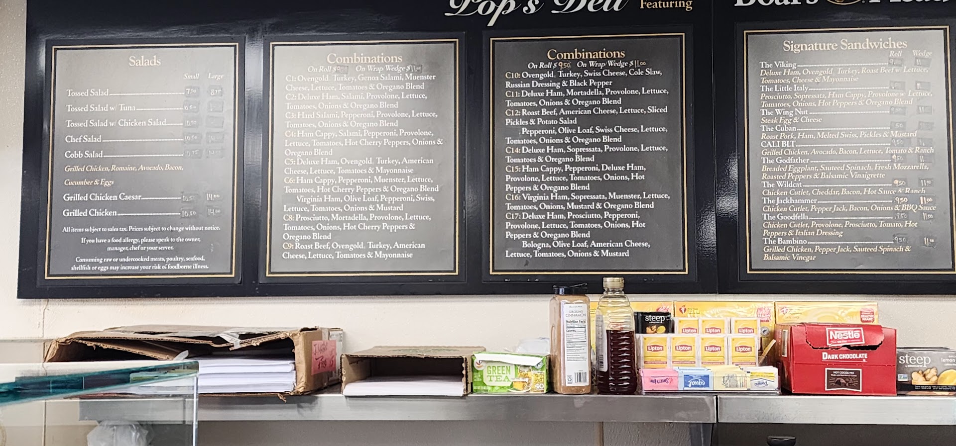 Pop's deli is your classic small, friendly, and delicious deli. Never had a problem with them and I've gotten food almost everyday before work over the summer. They make all kinds of food. Whether it be a breakfast/lunch sandwich, salad, or anything else, everything at Pop's Deli is really good and at a reasonable price. Their customer rapport is phenomenal from my own experiences and I hear the same from anyone that gets food from Pop's deli. Decor isn't nothing special, but then again it's a deli so there aren't many decor options to work with, but with their friendly approach to customers and good food, I think they can get away with a simple decor in their store. Totally would recommend if you haven't tried them out. Prices...