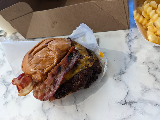I just had the funniest experience with them⦠they gave me the wrong burger. Twice⦠Iām glad I chose to dine in so I notice I didnāt get what I ordered. Usually I wouldnāt make a fuss about it and will stick with the wrong burger, but this time someone specifically required āno bunā⦠So I went back and since I only notice they gave me the wrong item after I dug in my fries they couldnāt take it back, they re-made the whole order for me. I mean I understand they were very busy and I still think it is very nice of them to offer re-making the whole meal. But the second time I got another wrong burgerā¦. As you can probably see in the picture, I ordered a double shack something burger, and this time they gave me something with bacon and fried onion and diced red peppersš Mind you in both cases they had my name printed on that little piece of paper and had it stick on the bag, and they clearly called out my name, so I definitely didnāt take someone elseās bag.. So⦠i ended up with two whole meals - two cheese fries with bacon, and two burgers (non of them is mineš) I donāt want to leave with another burger and fries so I chose no to go back and make them redo again. Thatās the end of todayās story.