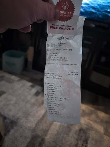 Read moreI placed an order for pickup with about 45 minutes of advance notice. This was my first visit to this location and it was a relief to not see a huge line when I entered. I decided to wash my hands before picking up my order. When I looked to make a path to the bathroom I realized the floor was dirty. Not like someone spilled their tray of food but like their broom was stolen last week. Napkins and straw wrappers littered the floor and it was disappointing as there were people sitting around at a few of the tables eating with trash at their feet. There were plenty of workers behind the counter and when I saw there was nothing at the pick up area I stood there for a moment trying to decide who to ask aboit online pick up. The a lady asked me if I was there to pick up and as she went to find the bag with my name on it another guy who's as walking towards me with a bucket of tea or something to refill the machine also asked if I needed anything. I was about three minutes beyond the scheduled pickup time and she quickly got it to me.. Somehow by the time I got the car and took a bite, it was cold. I don't think they made my order when they received it 50 minutes earlier but it did seem like maybe they made it 10 or 15 minutes earlier as it was a little warmer than room temp but the lettuce was flat and wilted as if it had been in the steamy little oval bowl for too long. I failed to take a picture of the most disappointing and sad looking meal I've ever received at Chipotle but I also haven't been around one in the last few years. Maybe this is the norm for a $15 attempt to curb the late lunch hunger from being on the road.