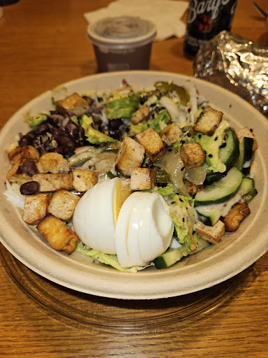 I had a bowl, and I will start by saying that everything was very fresh...a definite plus. The portion was also decent for the price. However, I will echo some other reviews noting the sheer lack of proteins considered a "standard" order. I would have liked the protein to base (tofu to cabbage in this case) ratio a little more even. Unfortunately the same was a little worse for the Chicken Cobb wrap. The lack of chicken was quite disappointing. It was a tortilla loaded with lettuce, a little bit of everything else and ended up tasting like, yep... a tortilla with lettuce. Nothing else could be tasted at all. The dressing didn't make it in the delivered order. It wasn't completely eaten. Half way through, I dug through the lettuce to pick out the non-leafy ingredients and the rest was left behind.