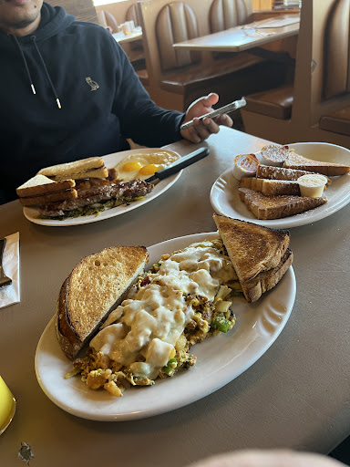 The service was really good with the staff keeping up with refilling our coffees and water. The helpings are very large, so much so that we each brought at least half of our meals home for breakfast the next day (also very tasty) It’s not an inexpensive meal but with a large helping one of their skillets could easily be shared by 2 people.