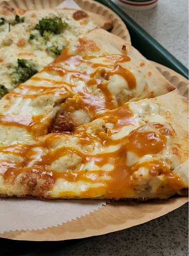 The pizza was perfect, and my favorite was the garlic broccoli pizza, whereas my daughter really enjoyed the chicken honey bbq ranch slice. The spinach one needed more cheese to go along with all that spinach. The brownie was a little over-cooked, which made it dry.