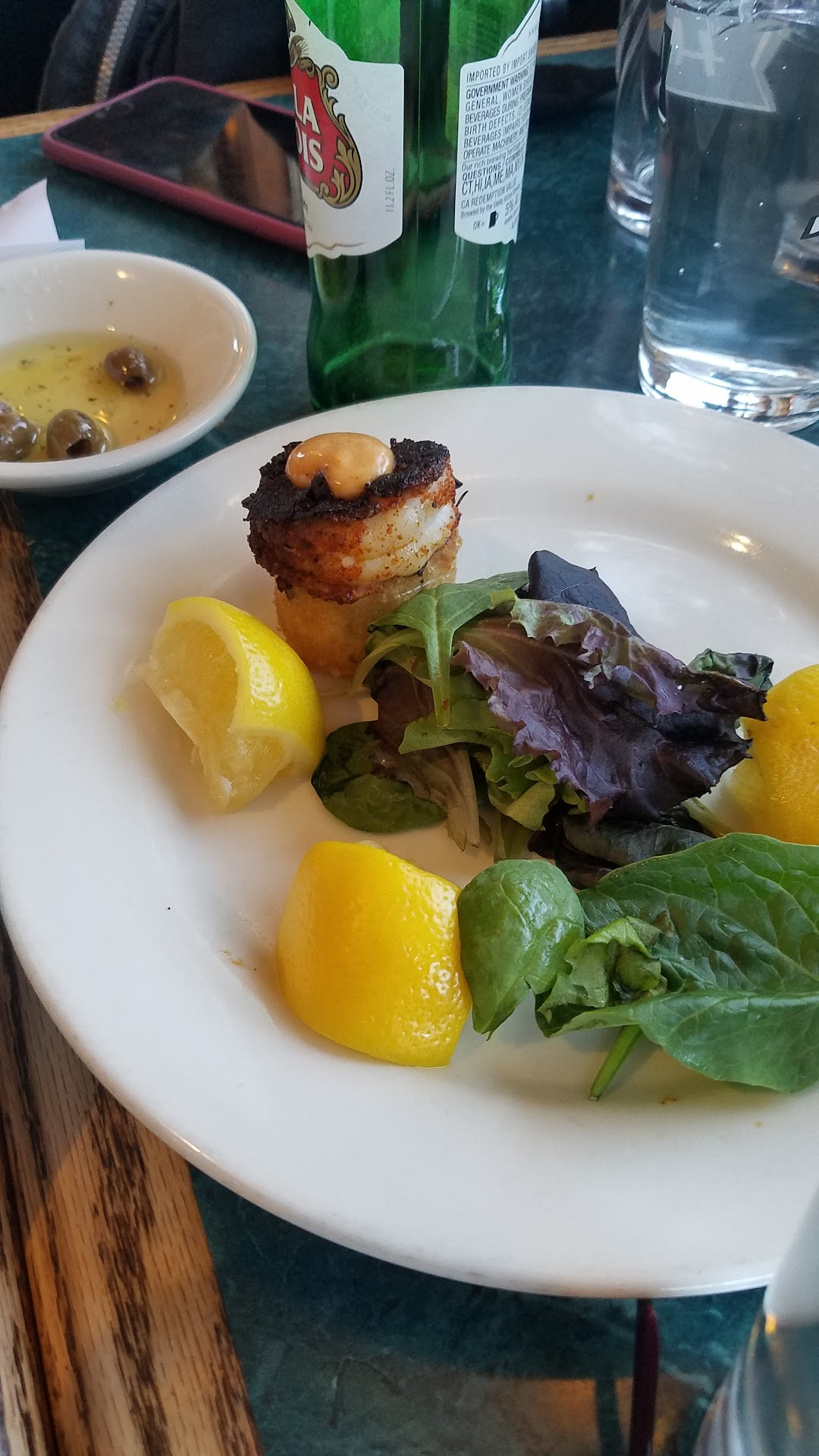 Read moreOkay. I was here many years ago and it was terrible! I went again today, at the urging of my friend...and I was pleasantly surprised. It was very good! The blackened shrimp over crispy grits was soooo good. Spicy. The dish could have used a bit of fruit salsa (like pineapple/mango) on the side for a cool down. I had shrimp in a rosé sauce for my entree. I really liked it. My friend had the steak and fried shrimp. She really liked it too. It was all a lot of food for me. I took a lot home. We had the warm flourless chocolate cake with vanilla gelato for dessert. I forgot to take a picture of it. Yummy too! I didn't like the smell when I walked in the front door. I know, I know... it's a fish market too, but I still don't like that extra fishy smell. I could not smell it after we got in the restaurant though. Prices are $$ - $$$. Depends on what you get and what you think expensive is. I would...