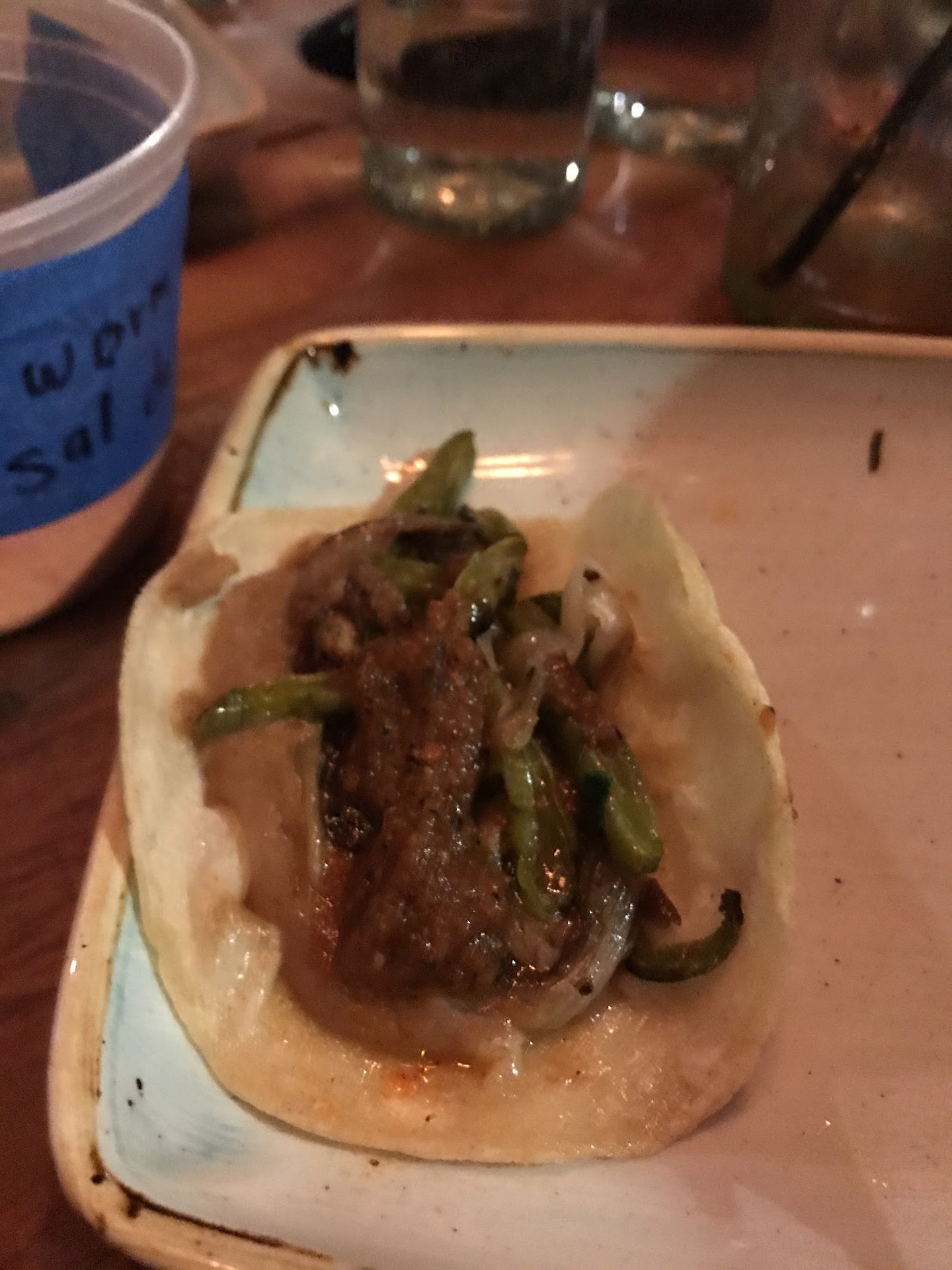 We ordered the chips and salsa to start with and those were great. Fresh, warm, and lightly salted chips. Salsa was thick and a tad salty, so we didn't need to dip a ton. The amount of salsa to chips ratio was great. In addition to that we ordered the Baja fish tacos and the birria beef tacos. The fish tacos were nice but only came with a tiny container of salsa. We weren't a huge fan of the tortillas they used. Not sure if they were old or fresh and not our type. The birria tacos came with a beefy thick sauce that was overly salty. It was difficult to eat or dip the tacos in. There was also a small container of what seemed like a spicy bean dip. I had a really nice kick, but the fact that it was more bean based threw things off. The beef wasn't as tender as I'd prefer and had more chew. I wish there were more balance with tomatoes, cilantro, onions, peppers, etc. But maybe that's just how the Oaxaca style is and I'm unaware.
