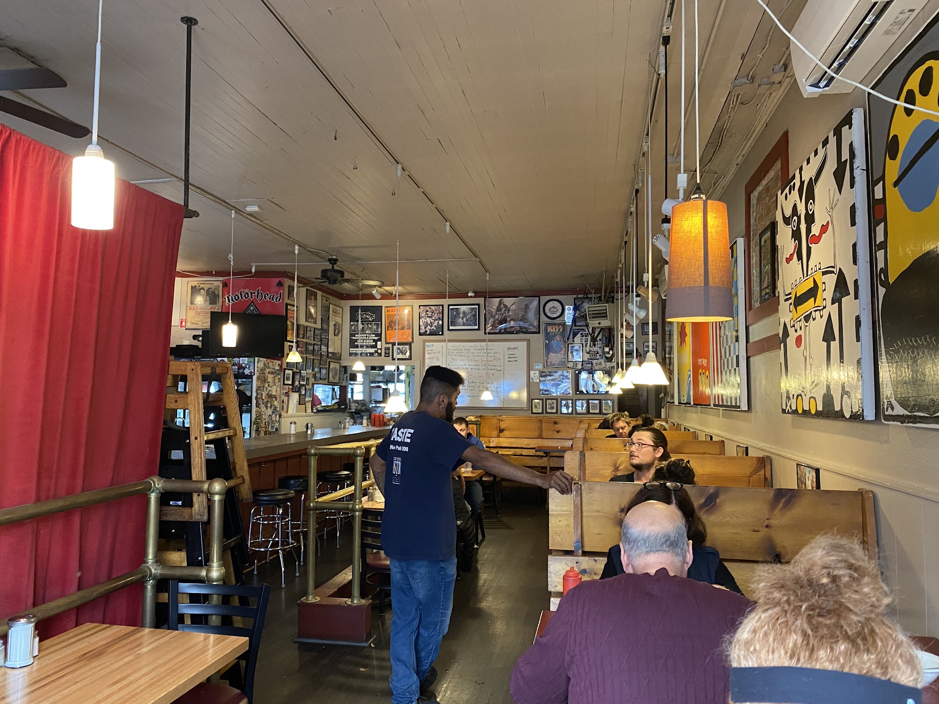 The interior was dimly lit but full windows up front bring the outside in, and older and a bit worn but that adds to the charm IMO. The energy of the lively staff and full age range of diners kept the atmosphere active and busy even arriving for a late lunch. The service was laid back but attentive and the prices were perfect for a college student not unlike our server and the rest of the staff. I ordered the classic BLT sandwich and fries, and my SO ordered the Turkey Club which were both delicious. Plenty of menu options that you would find at a quality diner or coffee shop but taste better.