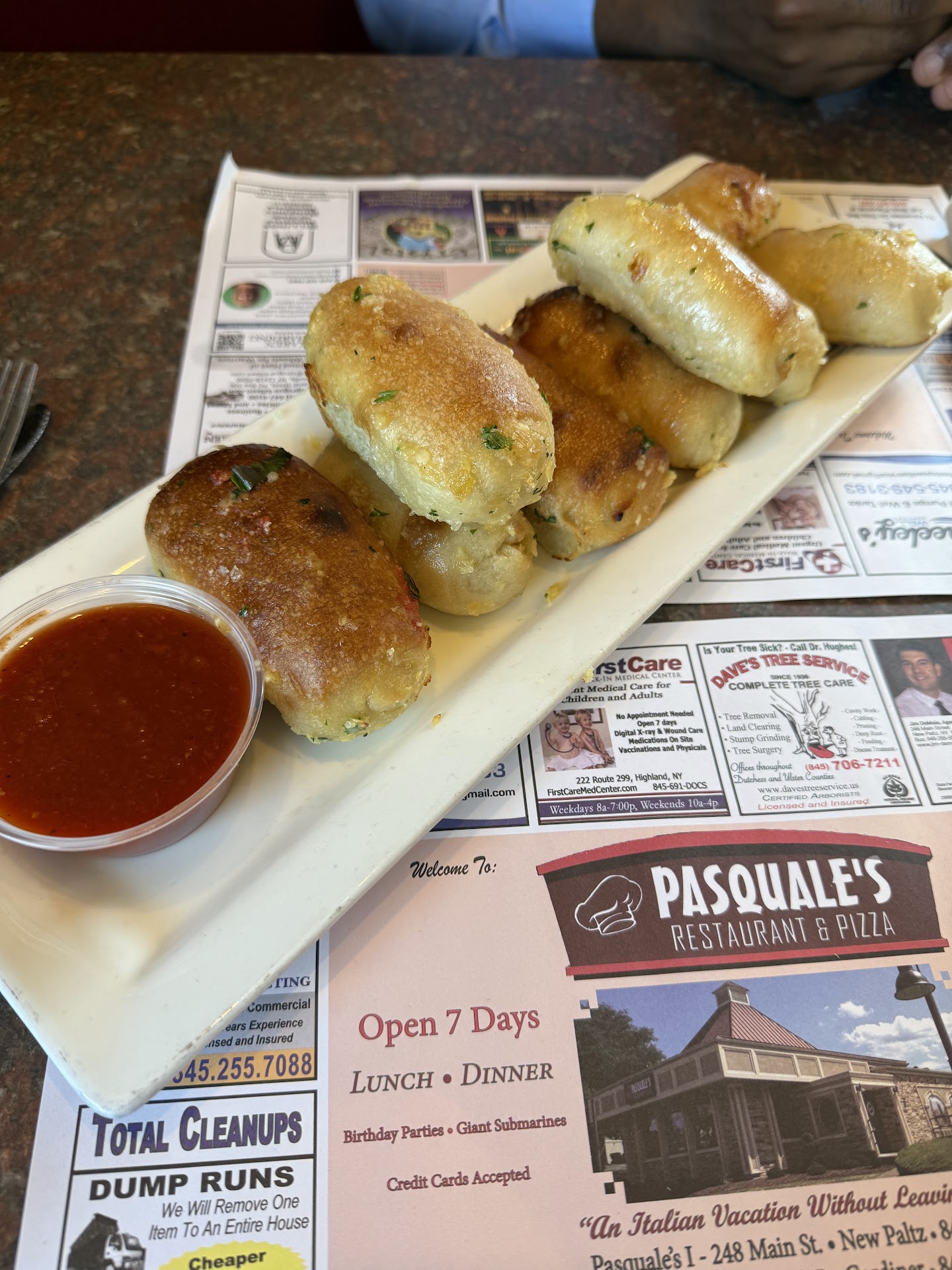 My partner and I were visiting many places in NY (and Tornoto) on route from Boston and Back again. While in Hyde Park, I had seen "Pasquale's'' and looking at the reviews, knew we would NOT be disappointed. We went in on June 1st, which was the last stop of our 14 day journey along the i-90 corridor and we were greeted by Will our Server, and he was most pleasant!! The menu was overwhelming, but we did make our decisions relatively quickly and were not disappointed. I got the Salmon encrusted .. with crumbs and the Rabe Broccoli and my partner got the chicken cacciatore. The Home made bread was delicious and the meal excellent. I did take photos out our dishes, but sometimes google is fickle and won't accept them, but if they are not there, use your imagination ;-) because they looked as great as they tasted!! Thanks for the great conversation Will, it was really a nice last stop for us ... as we left for home the next morning from our Hilton in New Paltz .. .. a nice way to close the chapter of our journey!