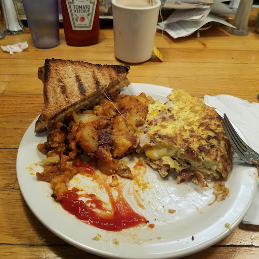 Read more🥴 Not sure where to begin here. The folks who work here are very nice, but that’s the only real positive here. It was busy when we arrived but we were seated pretty quickly. Unfortunately, the service and actually getting your food is a very slow process. Everyone at my table had overcooked or burnt food. For example, I got the corned beef hash with over easy eggs. My eggs were closer to being over-hard (partially cooked centers) and the hash was so burned in the bottom it tasted like gristle. You want hash to be a bit crispy but this was actually blackened. Even my home fries were burnt. I’m not talking about crispy- they were black and tasted burnt. My friend got pancakes and they were left a little too long on the griddle that even when using a knife, they were hard to cut up. Since it was busy and we’d already waited 30 min for our food, I definitely didn’t want to ask for a remake.
