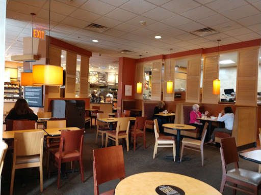 I haven't been here since before the pandemic. It was the same as I remembered but now they have pizza and Chinese food? (Ok flatbread and teriyaki broccoli but still). I had the Greek salad and squash soup both were just as good as I remembered.they had almond milk for my coffee and the cup for water was double the size it used to be. All good stuff. At the end of my meal there was a little fruit fly hanging around which I could have done without. It was crawling on my phone when I was trying to get to my review page. It's gone now. Ok now the bathroom...two stalls. Hot water in sink. Not touchless soap dispenser but plenty of soap in it. Touchless paper towel dispenser which was empty when my friend was in there but full when I was...that means they are servicing it regularly or I got lucky. The stalls both had some sort of crumpled paper on the floor...was it left there since the paper was refilled or was that not part of the servicing? There was a rubber stripping around the stall doors...did someone complain that waiting patrons were peeping? Well it was definitely an after market addition added with duct tape so I guess I'm glad they responded to whatever complaint led to this add on. Here's a tip for all paneras... If you activate the paper towel to come out and grab it with both hands as it is being dispensed, you can pull on it and get a lot more paper towels. More bang for your buck. This was a tip I got from a Panera employee. You're welcome. You're welcome. I have peed here before and would pee here again.