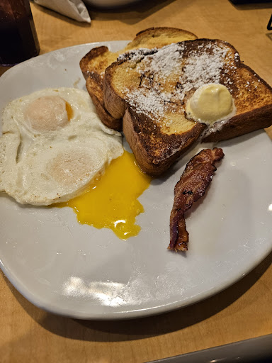 I used to love this place - but the last couple of times I’ve been there the food hasn’t been good. Scrambled eggs looked so unappetizing and had an odd consistency, spoon in silverware wrap had crumbs on it upon opening the napkin. I’d say the worst of this visit was our waiter. I unfortunately did not catch his name but he was probably the worst waiter I’ve ever encountered. Not friendly at all, no smiles, no nothing. Barely came to our table. Once right after we sat down and asked if we were ready to order (we said no). Came back three mins later asking us again, we ordered and then he came to bring the food but made sure to have his thumb sticking into my friends food. He then, and to me this is the worst part of the experience, came to our table maybe 10mins after he brought our food and lifted the syrup holder up, placed our bill underneath it slammed it down said “ok” Unser his breath and walked away. Didn’t see him after that. We didn’t ask for the check. He never asked if we wanted refills on our drinks as we had already finished them. Never asked if we wanted to order anything else... just randomly brought the bill while we we literally in the middle of eating and said nothing more to us. I should note we were never rude to this waiter, we were very polite, saying please and thank you, we smiled, etc. so we did not deserve to be treated this way. This man alone, has sealed the deal and I’m never going back to this...