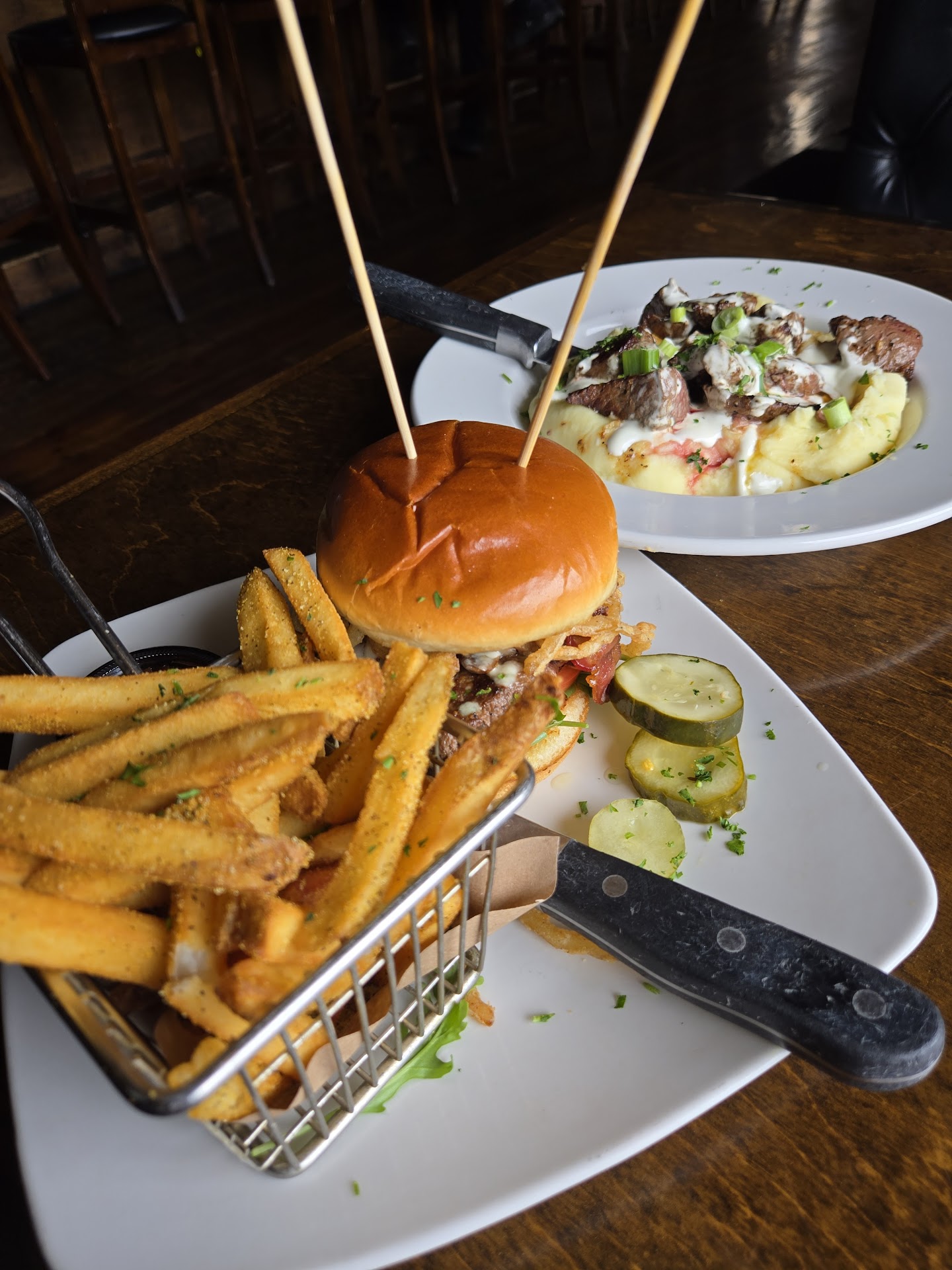 We tried: The Game Burger: it was Lamb when we went, we both got it and absolutely loved it. The Bacon Jam Burger: my boyfriend absolutely loved this The pot roast sandwich: super tender meat, delish The calamari: this is so good, I can't describe it. Super buttery, and served with a little bit of spicy peppers. It is divine. The sweet potato fries: crispy and delish, and the honey butter is next level The Chocolate Oblivion: it's their only gluten free dessert, but it is so good. I was nervous when they described it was a "dense" flour free torte, but it has an amazing smooth texture almost like a mousse and a cheesecake had a baby. It is rich and decadent, we split it and CRUSHED it. 😂