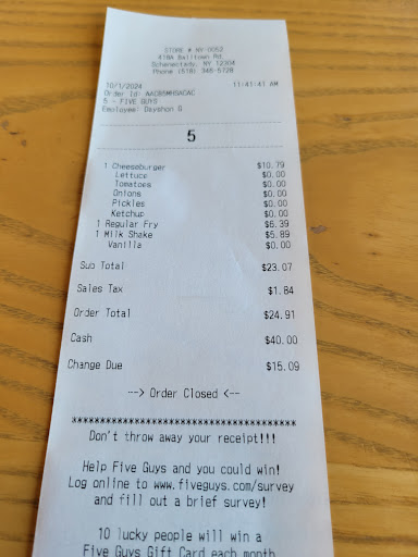Read moreFood is okay buns break apart, the fries are the only thing I enjoy. Workers do not practice safe food handling. Cashier with the black shirt and hat with tattoos. He was wearing gloves went from the register to making food, went to restock condiments, napkins, touched his hat back to making food then the register wearing the same pair of gloves. In my opinion that's not only disgusting but also a major health concern. Also the soda machine clearly never gets changed, drinks are always flat or all taste like seltzer. I have asked nicely before if they can fix the machine the workers would tell me nothing is wrong with it. When you ask for a refund they give you a big stink. I am sorry I don't want to drink something I am not going to enjoy and taste like garbage. This place has gone down hill significantly and...