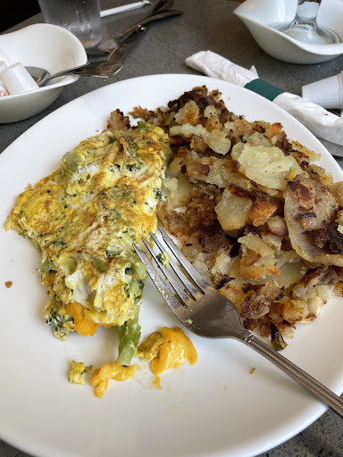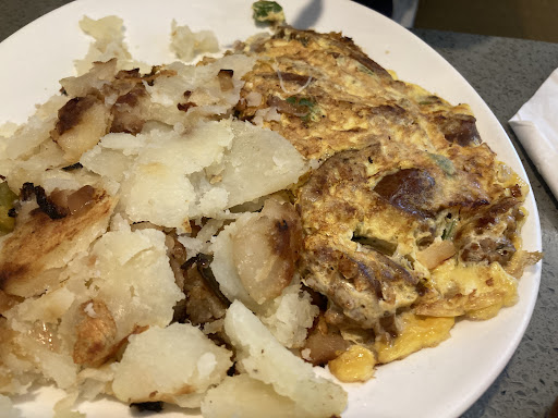 The omelette was cooked with no salt or pepper and was wet. The home fries were not at all what we expected and also had no flavor.