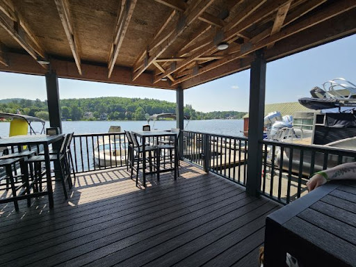 We walked down from our hotel, crossing the street, which was a bit difficult. The sidewalk is only one side, and it is a busy street. When we got there it was slightly confusing for out of towners what to do to order food for ear in, but we did order food and ice cream at the window then we were able to sit with our dog at their lake side deck, which had a small bar. It was only bar stool seating, we did not mind. The view was gorgeous, the staff polite. The food was awesome. I ordered a haddock sandwich, which was fried perfectly and delish! My husband got a burger, which had all the fixings and was cooked perfectly. We shared some loaded fries. We also got milkshakes, a banana, and raspberry, both very delicious! And they have doggy ice cream, which comes with soft serve with a bone in it!