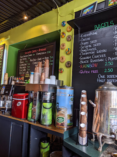 A full-range coffee bar brought to you by Green Mountain Brewing company. lattes, cappuccino, tea, you name it, they have it. Bagels are garenteed fresh daily with a wide range of flavored cream cheese spreads.
