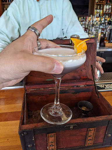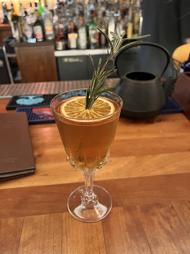 I must reiterate, this is NOT a place for eating. It is a place for DRINKING and being SOCIAL, and if one becomes peckish for a tiny morsel to accompany their drink, they have a lovely selection of small plate dishes that accompany a drink perfectly. And I mean perfectly. I must emphasize the two words: SMALL PLATE. It is no secret....they say so in their menu....that they have a small kitchen, and wait times can be a little longer, and your order might come from the kitchen in random order, but it is stated in print on the menu. This sets up their level of service as an EXPECTATION and not a SURPRISE. Well played. I tip my hat to you. Remember, you are there to DRINK. The glass window at the top of the stairs has cocktails pictured on it.