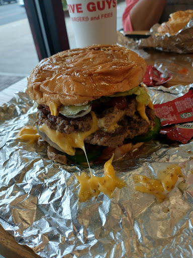 Read moreWhile the food (burgers & fries) is the same high quality it has been since the place first opened, this particular 5 Guys Burgers & Fries has lost most of its unique charm. The remodeling of the store that changed the layout of the store LOOKS great, but lacks a degree of functionality. For example, there are a whole series of tables in the fairly narrow "hallway" to the restrooms, giving off an atmosphere not unlike the seats of a wide body airplane near the bathroom. The seating area SEEMS smaller too. There also used to be more vocal about foot traffic and calling out orders. Thankfully, the food is the real reason why I go there and they continue to impress with their tasty, slightly...