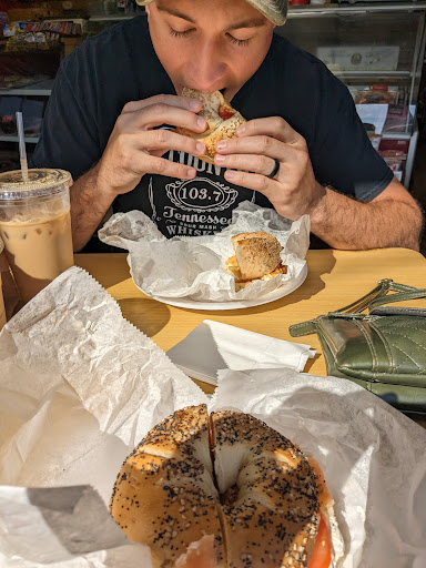 Read moreBarbara's bagels was such a a wonderful surprise. We are headed out of town after a wedding and I needed a lox bagel. Hubby (pictured) found Barbara's bagels on a quick Google search. Walking in you can definitely tell this is where the locals go. The owner? Manager? Is super friendly and knows regulars by name. I got lox and scallion cream cheese on everything and hubby got a bacon egg and cheese on sesame. He said it was the best bagel sandwich he's ever had! We both got delicious iced coffee. The bagels are big and crispy on the outside, soft on the inside. My one wish is that they had capers on the lox bagel. When we come to our next long island wedding we will definitely be stopping at...