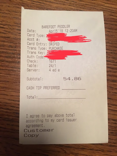 Ā Ā Ā Read moreI had never been to Barefoot Peddler before, but had heard good things about it from my parents. My mom's sister has said that it was expensive so I was a little nervous. When I walked in, I saw a sign that said "23 & Older". My immediate reaction was "oh dang, they aren't going to let me in" and "That's strange." After about 5 minutes of standing there, a waitress told us to sit anywhere. No carding, no 'how old are you'? When our waiter arrived he once again didn't ask me my age and didn't even card me when I ordered a 7&7(but that might've been because I was with my mom). After looking at the menu, I would say that they are reasonably priced, not cheap, but reasonable. In the realm of Applebee's and Fridays. I will say some of the appetizers are a little more than I would expect, but nothing insane. Plus, I don't know how big the portions are. I got a cheeseburger which was $13. Can't go wrong there. My mom got the Thanksgiving Dinner which was also reasonable. The parking lot is very small and the bathrooms are all the way down 2 flights of stairs, so I don't recommend if you have trouble with stairs(ie: wheelchair, walker, etc). One of the only negatives is when you get the bill(not before) on the bottom of the receipt it says 'please no gratuities on credit cards'. Well, thanks for letting me know! I started to worry because I knew that I didn't have enough cash to leave an adequate tip(I like to tip around 20% unless the service is less than what I would expect). Thankfully when I got the credit card slip, it said 'cash tip preferred' where you can enter the gratuity. But overall I thoroughly enjoyed my meal and...