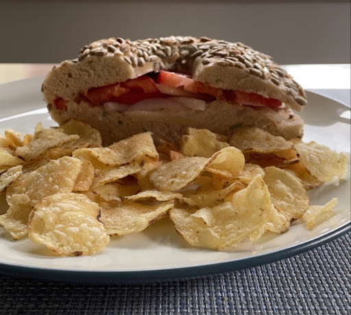 I normally get tuna, onions and tomatoes on a sunflower seed flat with a bag of chips (shown in picture). If you’re lucky you can get one of the few street parking spots that are near the front of the bagel shop and if not there is a parking lot located behind the bagel shop that is used for local shop parking. The parking lot is almost never full but be aware that it is Muni Meter parking (not free) so have some...