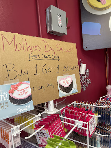 Read moreThis is such a nice Carvel! We wanted a cake for our son in law and he loves Carvel and this store has everything! We found exactly what we wanted and when my husband asked the operator how old the cake was, she looked at her watch and said, "about 3 hours..." She has such a friendly personality, and GREAT cake decorating! She wrote what we asked on the cake and it is just perfect. We know he's going to smile when we sing to him. P.S. The store has great parking in its own little lot, the store is clean, many cake styles to choose from, they even have boxed "cupcake sized" ice cream treats like you could serve for a small party. There are prepackaged ice cream cones with all sorts of toppings individually wrapped or you can get your own ice cream where they make you a cup or cone with your choice of toppings right there. AND - there is a selection of dairy-free sorbet that they can scoop for you! This store is great, and we would travel to come back when the need arises!...