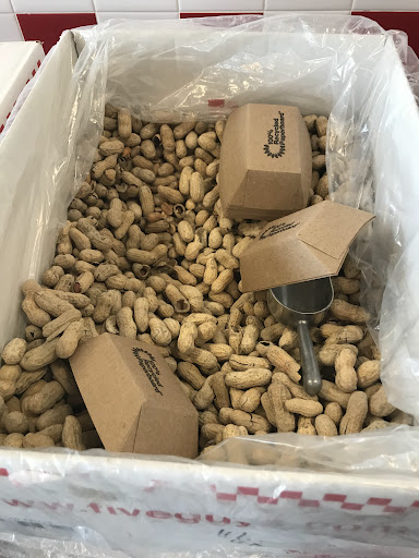 Read moreLet's give credit where credit is due. After a long back and forth with the kids trying to choose lunch, we decided on Five Guys. It had been a long time since we've had it. Thinking about it, it was like the earliest fast casual that elevated the hamburger. Way before shake shack or smashurger or bareburger or whatever. Note that if you have anything resembling peanut allergies, you should stay away as there are literally peanuts everywhere. Freshly roasted, unshelled peanuts in cartons, are available with little paper boats for munching on as you're waiting. Their fries are fried in peanut oil.