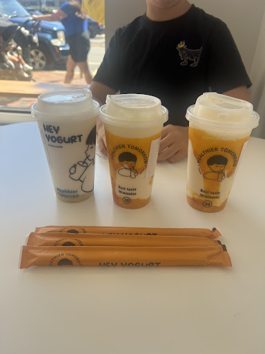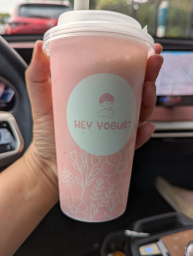 Read moreI'm not a big yogurt eater but making it a drink with delicious fruit/jam might make me one! My family and I tried Hey Yogurt for the first time and it did not disappoint. We ordered a passion fruit yogurt and a strawberry yogurt, and I couldn't decide which one I liked better. The consistency is thick like a smoothie but not too thick and the yogurt is sweet unlike the slight sourness you'd expect from a yogurt. Seems to be an overall healthier option than other desserts which is exciting. We mayyyyy have let our 1yo try it too and since he almost drank the whole thing by himself, we should've ordered him his own! The cheesecake was delicious, but I can see the price deterring people from getting it.