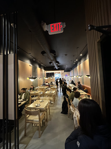 I have been waiting for this place to open for a LONG time. A ramen shop so close to me! So when they finally opened on Sunday, I had to go immediately and show support. It’s one of those long and kind of narrow shaped space (like you’d see in Manhattan). There’s an open kitchen in the back left and the long walkway that passes their bubble tea station and further down to 2 non-gender specific (and strangely spacious) bathrooms. The decor is modern and clean with really high ceilings with wood and stone panels adding to the spacious feel. Being part of a small chain, they had their logo on everything. So to give a it a proper try, we ordered a variety of things. Takoyaki balls (the deep fried squid balls), the Kara-age (japanese deep fried chicken, 6 per order), the charsiu buns (2 per order), the charsiu ramen, and the spicy miso ramen. The takoyaki was probably the best - hot, with a crispy crust, creamy inside with little squid chunks and the bonito flakes on top that wriggle in the heat. The karaage was eh - the main reason I order this elsewhere is for the juicy chicken and flavor of the light batter but this was just kind of dense and dry. The buns were good but could have used a little more charsiu. But this charsiu was good (maybe due to the sauce?). Now for the ramen. Both broths were decent - the spicy miso kind of tasted like the one in the charsiu one but with some chili oil, but otherwise less salty than what I’m used to (just on the right side of bland). The charsiu was kind of disappointing - 3 big slices but they looked kind of blowtorched rarther than well roasted. And the egg was more like a regular hard boiled egg rather than the soft boiled egg typically found. Also, I found bits of the other kind of meat for their other ramen in my bowl which makes me wonder about how well they’re keeping stuff separate. But the absolute saving grace were the noodles. They were thin and wavy noodles and they had the absolute perfect bite which magically lasted from first to last slurp. I will have to come and try some more dishes for a final view. The service was a bit uncoordinated but they just opened so totally can’t be held against them. I look forward to coming back and trying more stuff...