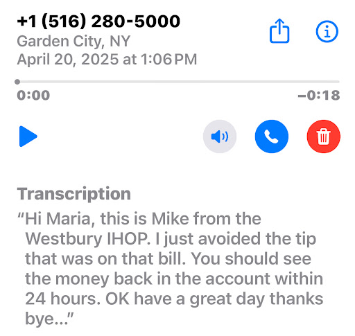 Read moreVery unprofessional. We walked in, and someone was standing there, not the greater. She took us to the table without saying one word, dropped the menu, walked away, and dissappear to the back, never going back to the front at all, even after we left. Our waiter was a tall Spanish guy with glasses who looked like he had way too much on his plate, calling out people/employees from the back, in front of all the customer saying " bro bro you need to help me out, come on bro" speaking to a short Spanish guy with messy hair who also keppt saying "bro" with every other sentence, while other guest were standing up in front with no greater to seat them. Waiter brought out coffee with no plastic spoon that is usually brought out with the milk to stir. Bread was hardly toasted one one side, and the other side wasn't toasted at all. They ploped the butter on top of the toast without putting in the usual container. The entire time we were there, not once did our waiter come to check up on us to see if everything was ok. This is one of the worst experiences we had at IHOP. I will never waste my time or money going back to this location. If I could rate this location a 0...