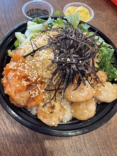 I tried the chicken & beef bento box from here and it was great! It came with the hibachi meat, fried rice or lo mein (I took fried rice), veggies (cabbage, carrots, broccoli), 2 pieces of a california roll, 2 spring rolls and 2 fried chicken dumplings. It also came with this creamy sauce, that I think is mayo based (I’m not sure), but it was delicious! The food reminded me of Sarku, so if you like Sarku, you’ll definitely like the food here! They gave a lot of food for the price. They’re currently doing a stamp card where you get a free chicken hibachi meal after purchasing 5 hibachi meals, which I think is great to get customers back in. Water is free, they give you a water cup and you fill it yourself (like at Chipotle) which is wonderful because some places only carry bottled water that you have to pay for. They also have a photo op wall, for anyone who wants to take pictures. The employees there were very helpful and accommodating, not rude at all like some of the previous reviews mentioned. There’s a Chinese food spot located in the same parking lot as Mufu and they’re a lot more expensive, the food isn’t as good and you don’t get as much for your money. I much rather buy food from Mufu than the...
