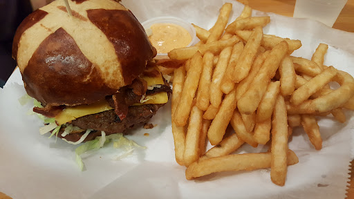 Read moreThis place is very close to Winthrop Hospital making it a good place to go while waiting while someone has outpatient surgery. I ordered the PS Texas burger which was very tasty with nice,crisp bacon. I changed up the side and got half onion rings and half sweet potato fries. Very accomodating staff. My sister had the PS Grilled Chicken and Avacado. She wasn't able to finish it because this thing was HUGE! Very generous portions all around. She took half of it home. Since we had a long wait, we decided on dessert. I ordered the Fried Vanilla Ice cream. It was done to perfection. My sister had the Chocolate Brownie with ice cream and caramel. The brownie was nice and warm , just enough to make the ice cream melt down the side of it. It looked really good and again, a generous portion.The time we went( 1:30pm) it wasn't very crowded so we stayed a long while and were not rushed out of the place. Worth stopping in for lunch and in my opinion, prices are very reasonable...