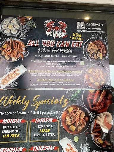 Read moreWe went to The Monster Crab yesterday with my dad, and honestly, it’s a great deal overall. First off, the ambiance is really nice. They’ve got some great decorations, and the atmosphere is very welcoming. The staff is super attentive, and if you need anything, any of them are happy to help you out. It’s not like you have just one waiter—they all work together as a team, which I thought was fantastic. One of the things I really liked is that they add the gratuity to your bill, so you don’t have to worry about figuring out the tip. It’s a fair price, and you can just enjoy the meal without that added step. The portions? Very generous. Just a couple of things to keep in mind, though. Certain food items do come with an additional fee. I got the whole lobster, which was $10 extra, the lobster tail was $5 and nice size crab legs—$5 per piece. So yeah, just something to remember when ordering. Now, I do have a shellfish allergy—specifically shrimp—and they did let me know I couldn’t have any of the fried products because everything is fried in the same pot, so they couldn’t guarantee no cross-contamination. But the seafood boils? They were able to accommodate me! I got to customize my boil with the garlic buttery sauce, and it was so good. Not too garlicky, not too heavy—just really tasty. If you get a chance, definitely check this place out. The lunch special is a steal, but they do have a sign that says prices will go up the first week of December, so that $24.95 deal won’t last forever. Still, totally worth it. Hope you give them a...