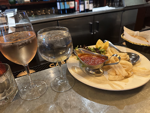 The bartender ignored the totally uneaten plate of calamari. It made us feel like we were totally an inconvenience. I did show him how stretchy and rubbery the calamari was before he came back with the check, no apologies but he did take it off the bill. The beer and wine were nicely chilled and the glassware was sparkling.