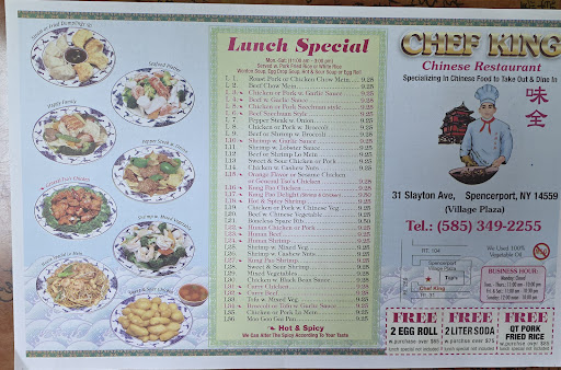 Read moreI come here at least 3 times a week for lunch. Sometimes on Saturday night too. They have the best Chinese food. I have never got bad food. The hot and sour soup is the best ever. Super friendly staff. Speak great English. I get a lunch choice and add lomein in place of rice( charge $2 extra for it) that is $9.50 Then I add egg roll..and buy a small container of soup. Its about $16..but sometimes I get extra egg rolls to so it can be about $19.. Just a idea on price. I absolutely love Chef King in Spencerport. I even come from Holley to get...