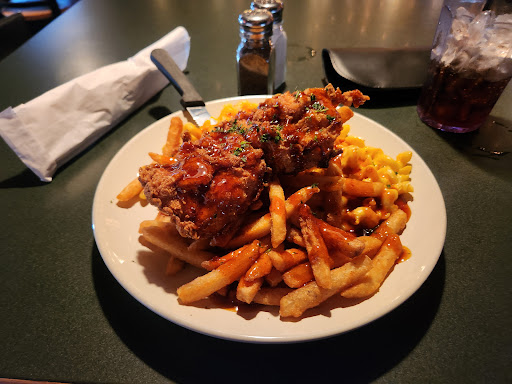 I ordered the Bourbon Fried Chicken Plate for lunch. It comes with a large piece of fried chicken, French fries, and macaroni and cheese, with a sweet bourbon sauce. The chicken was hot, fresh, very juicy, and crispy. The French fries were perfectly seasoned with a nice crispy exterior and fluffy warm center. The macaroni and cheese was excellent, pasta was al dente, and the cheese was hot gooey and very flavorful. All together, it works perfectly.