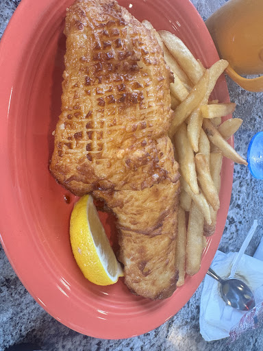 Read moreThis was our first time here. My husband and I were children free for the evening and we drive by every day so we thought we'd check it out. I got one of the Friday night specials Broiled Lemon Pepper Scallops. Which were neither lemony or peppery and overcooked. I would've like pasta but they only offered potato options. I chose mashed but they were the instant kind and I didn't eat them. But the cole slaw was excellent. I liked the chunks of pineapple in it. My husband got a Philly cheese steak and fries. Fries were good. The cheese steak was very light on the steak and my husband had to ask for mayo. I ordered a slice of lemon cake to go which had that "been in the fridge taste" to it and dry but I ate it.