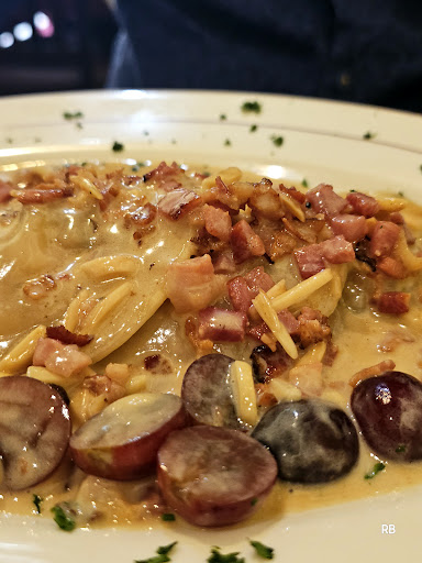 My mother-in-law wanted to try this restaurant for a dinner with neighbors on Saturday and I was pleasantly surprised. Overall we had a very positive experience and the food was enjoyable and well prepared. I liked the variety of seafood and seasonal touches on the menu. We loved the basil pesto they serve with the bread and the cocktails were enjoyable and well made. I had the special salmon rillette appetizer and while it was good, I wished I had ordered the scallop with the risotto appetizer because another member of our party ordered it and it looked fantastic. I like smoked salmon and goat cheese and the filling was well seasoned, and the beets and mango were a nice complement to the dish. The rillettes were perhaps a bit overstuffed with cheese, and quite filling. The grilled shrimp with crispy angelhair pancake looked good although my mother-in-law left her pasta untouched as she said she was not used to sweet pasta (presumably from the coconut balsamic sauce). For entrées, I had the sautéed scallops and shrimp with pancetta and wild mushrooms and peas and I thought the dish was a bit salty (but expected it because of the pancetta) it was very well done and the mushrooms were meaty and the pancetta was delicious. The seafood was nicely cooked, I just wish that the scallops were not covered in sauce because they were browned beautifully and presumably had a nice crust at one point. I’m not generally the biggest fan of butternut squash, but the puree on the plate was smooth and heavily seasoned with cinnamon and paired well with the saltiness of the sauce. They don’t have a children’s menu but they offered a few options for my son, and he had linguine Bolognese, which did not look as meaty as the pappardelle Bolognese that my husband had (which was outstanding, the sauce was quite flavorful and the pasta was tender, definitely homemade) but he enjoyed it. I requested that his dish come out first and they accommodated so he could begin eating and not fidgeting quite so much. I normally would not chosee to bring an almost 6-year-old to this restaurant but luckily he was pretty well behaved and the waitress took the time to talk to him. My son wanted the flourless chocolate cake for dessert, which I found a bit dry and crumbly. My mother-in-law ordered the beggars purse and my husband and I split one. It’s hard not to like melted chocolate inside Filo dough. If I hadn’t been so stuffed, that would’ve been my dessert of choice and although I did not have any of the sorbet, I assume the tartness was a wonderful complement to the richness of the chocolate. Service was fairly attentive with water refilled almost too aggressively, cocktail refills were a bit slow and after we ordered our first round of drinks, the drink menus were removed so we had to ask for them again. But overall, the food was delicious and the chef was walking around and checked on us and we had a very good experience. By the time we left after about 2 1/2 hours, the restaurant was packed and there was a live singer so it was loud in the restaurant. The clientele is on the mature side. Overall we really enjoyed our food and the experience and would...