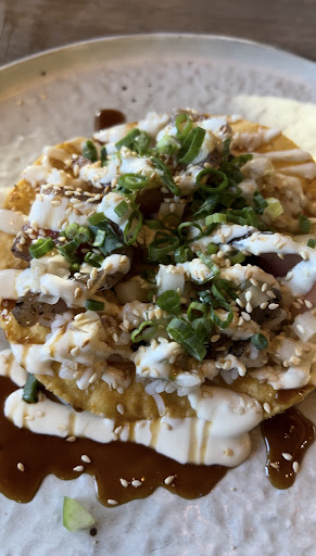Ā Ā Ā Read moreCame to this place twice since my boyfriend lives 5-10 min away from this place. We found out about this place since we heard of Chef Chris Holland from competing in Chopped and Alex verses America so we were excited to try this place. The menu was different the second time we came so they prob have a changing menu. We really enjoyed the steak tartare, koji butter board, hamachi tiradito. My bf enjoyed the shrimp handroll but I thought it was okay and messy to eat. For Takos, we liked the sushi roll and korean short rib. The korean hot chicken wasn't as great and was too brown/overcooked the second time around. I would skip the dumplings since you can get better ones in the chinatowns of NYC for wayyyy cheaper (it also only comes with 3 dumplings).