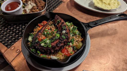 The drinks were great but $16? They were small and being a chef from NYC- even I find that seriously pushing it. These are not* $16 level drinks. The eggplant was inedible. The pita is store bought or sysco. The oysters were solid, surprisingly. The spinach pie was good, not great- good. The fried cheese was good. The gyros were… extremely disappointing. The brisket meat was flavorless and the presentation was just bad. It comes in a tight box with a bunch of french fries which in turn, get soggy with the bland couscous and some wet plain kale crammed in the corner. Theres maybe 4 pieces of meat, one was the size of a hot dog. Theres 2 pitas and a stingy cup of too thick tzatziki sauce. I was just… confused. What was even happening?