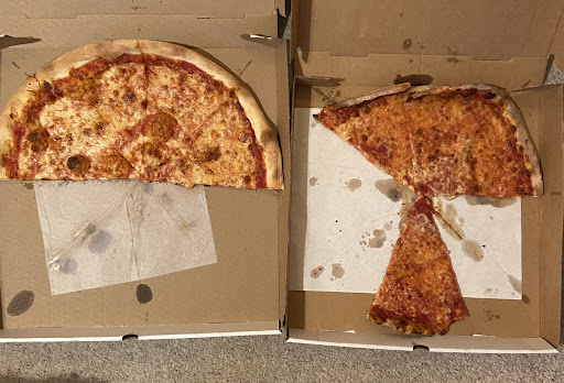 Upon entering, we noticed that the floor and tables looked dirty, but I understand times are tough, and it was a slow Tuesday. The pizza looked old, and I was hesitant to order, but we decided to go with a Drunken Grandma, a Chicken Parm slice, a pepperoni slice, and a plain slice for the kids.