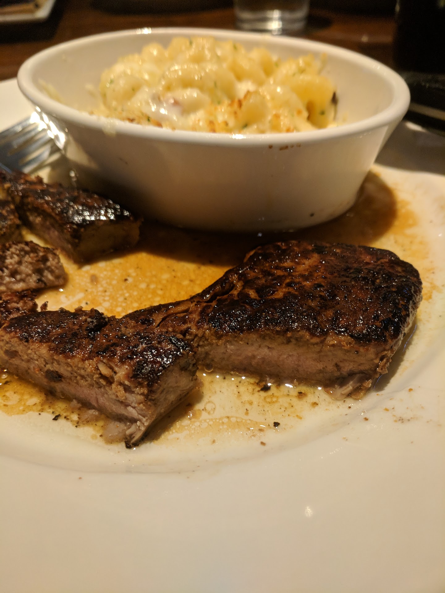 Read moreAbsolutely abysmal. My party of 4 and I came into the orchard park location around 630pm on monday evening. Throughout the entire experience there were minimal if any servers on the floor to help anyone. We had to ask multiple times for drink refills, bread refills, and were clearly being rushed through the entire experience. Our salads clearly sat in the back because our server was too busy talking to the bartender or she had gone outside because she was nowhere to be found. Upon arriving at the table the salads were soggy... Our entree arrived less than 2 minutes later. The food runners slammed our food on the table and stormed off. My steak (12oz strip) was mid-well on one side, and rare on the other. I ordered mid-rare. We had to speak to two different managers after one of our meals (a salmon) was gray and clearly had sat in hot water or some other liquid. The manager claimed it was the skin... and offered us a new one. The new salmon took 17 minutes to come out. In that 17 minutes we were not checked on at all. The second salmon came out and the manager immediately asked if it was alright before it was tasted. Our server still had not come over to ask if everything was alright. We were not offered more water, simply had the check slammed down in an attempt to force us out. We are repeat customers, the past experiences have never been like this. Needless to say we will not be returning. Higher management needs to step in before anyone else has such a...