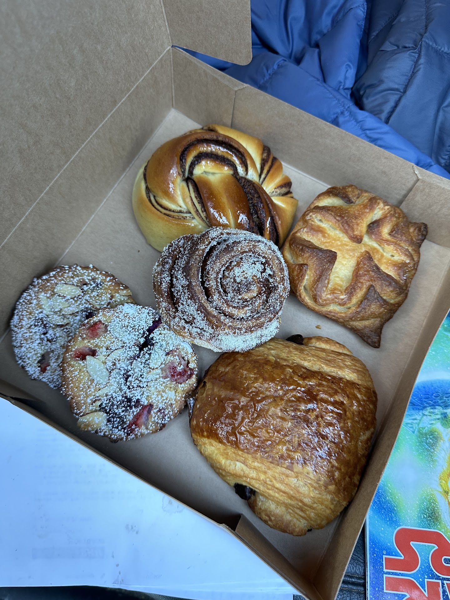 We spent $20 on 3 chocolate croissants and 2 mini-babkas.