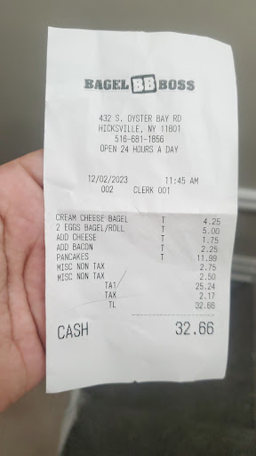 Now Bagel Boss has been in business forever and I doubt I am going to make much impact with my one review, but I just wanted people to know that you may get your bagels, etc. but you may get a big side of...