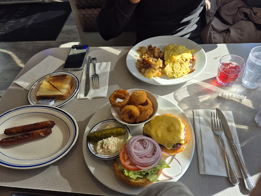 Nostalgic & reminiscent of a bygone era where families gathered at dinners. The food was excellent. It's not greasy & not overly seasoned. It's a quiet corner, and you'd have to look for it to know it's there. In the picture are the 2 eggs cooked anyway with corned beef and potato hash; deluxe cheeseburger with onion rings. Delicious and will add it to my go-to places for lunch.