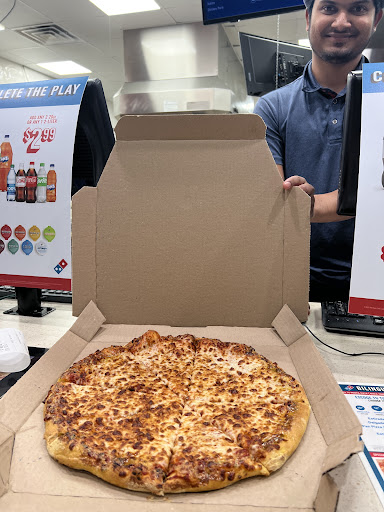 Usual review: Great, quick service with plenty of employees for a crowded night, very easy to go in and out with my order. Tons of topping choices compared to other chains, especially since they offer anchovies... The food is excellent for Domino's, and they don't...